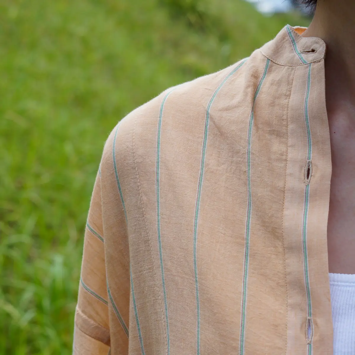 シャツのようなワンピース、空気をはらんだ軽い着心地で暑い日でも心地よく過ごせます。