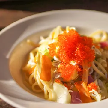 モチモチの生パスタが美味しい 「シラスとカラスミのペペロンチーニ」