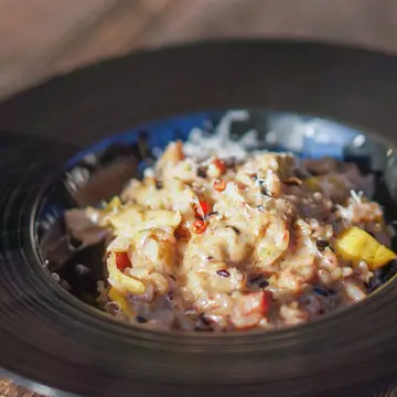 「色々きのこのポルチーニリゾット」 きのこのお味が濃厚でおすすめです。