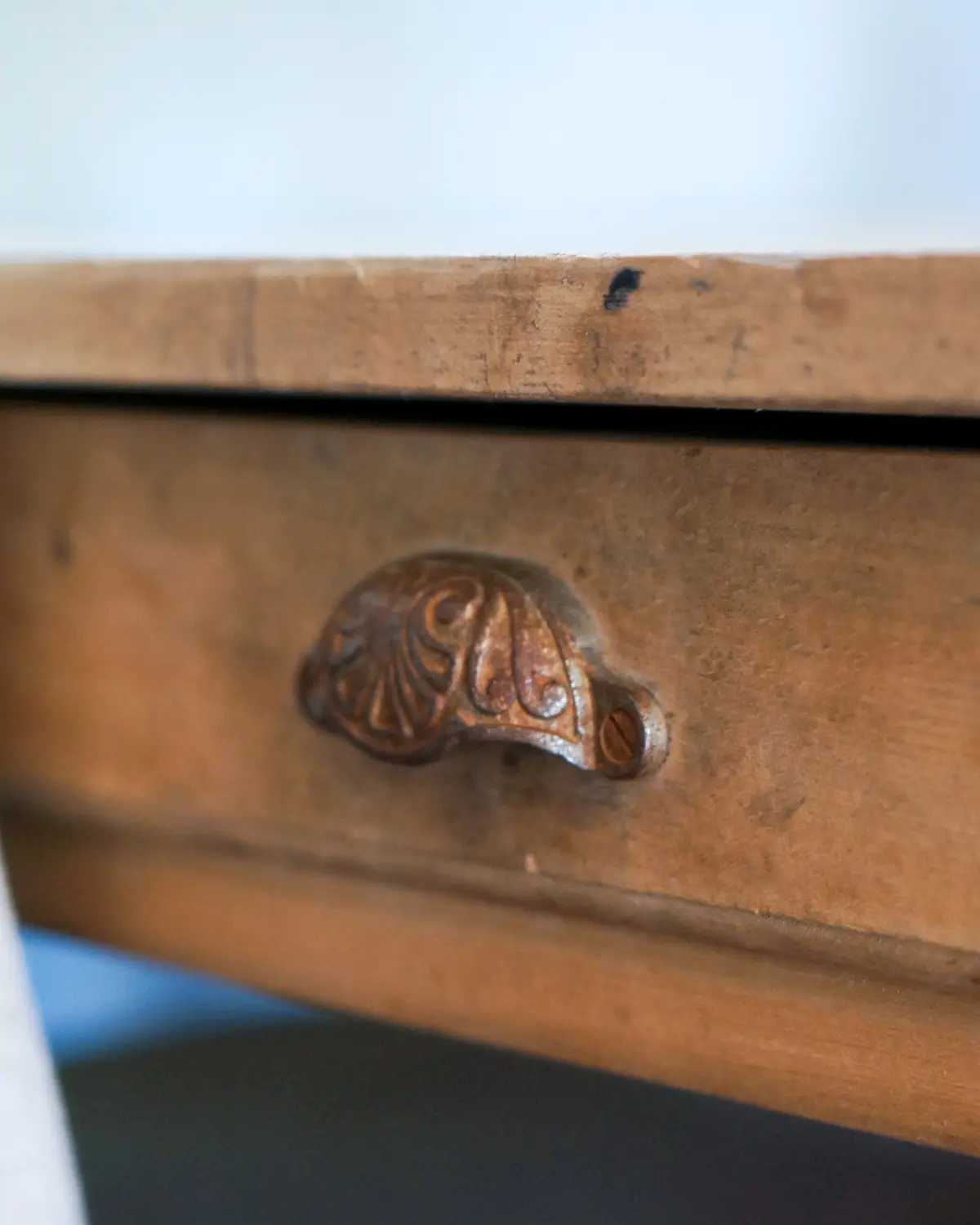 こんなテープルが欲しいなとイメージはあるものの、アンティークはサイズや質感が一点ごとに異なり、ネットも含めてなかなかコレと思うものに巡り会うことは出きませんでした。