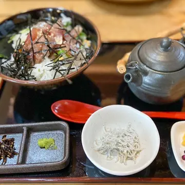「鯵のまご茶漬け」 ヅケにした生の鯵は新鮮で美味しい! 半分ほどいただいた後だし汁を注いで "鯵のまご茶漬け" を楽しみました。