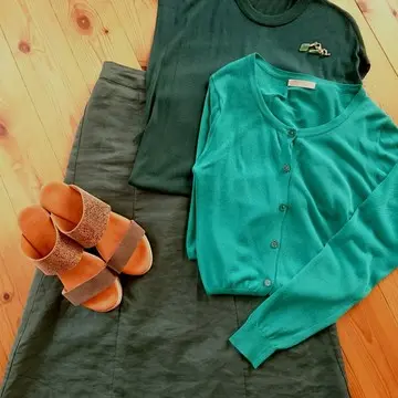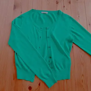 カーキを入れるともっと増えますが、鮮やかなグリーンの中でもパッと目を引くカーディガンが