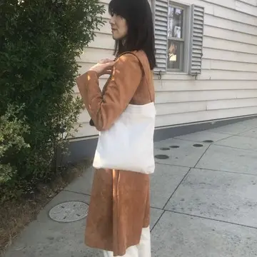肩に掛けても手に持ってもちょうどいい大きさ。ナチュラルベージュ×キャメルの色も良く、