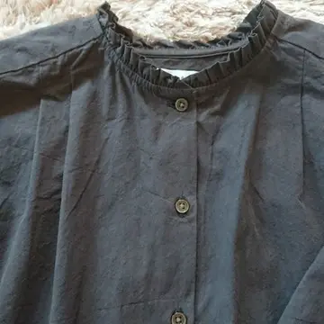 リラックスできる綿100% LILASIC のシャツ。主張しすぎない襟元のフリルと肩にはタック。