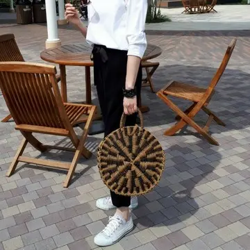 スニーカーやラウンドバッグの小物で少し外し気味コーデ。