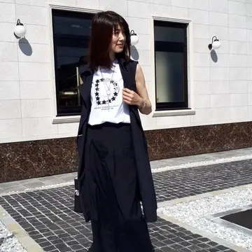 ジレを脱ぐとこんな感じでこちらも一枚で形がキマる!ロゴT初心者はまずシンプルに。