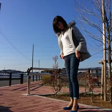 マリンブルーの靴にはデニム。大好きなスキニーで、足元をキレイにスッキリと