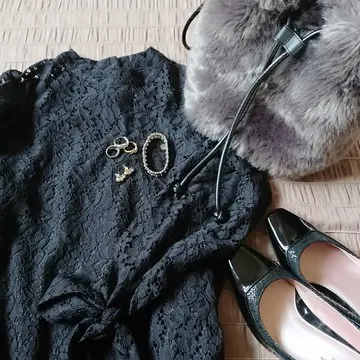 ブラックだけど総レース。素材からデザインまで女性らしく優しい印象が気に入りポイントです。