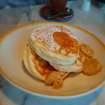 ランチのパスタをいただき、食後のデザートはパンケーキ。3人でシェアしましたが