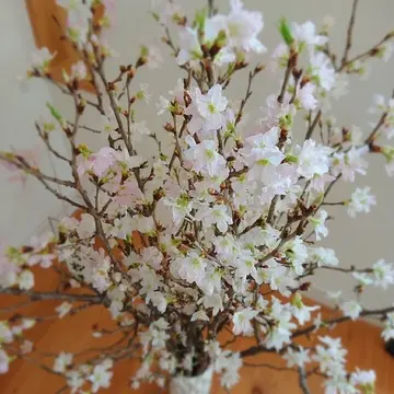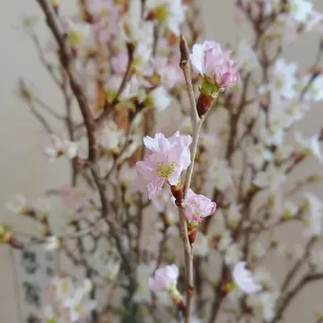 これは啓翁桜(けいおうざくら)という冬に花を咲かせる桜で、私の出身地でもある山形が