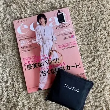 エクラ4月号の付録は、N.O.R.C × エクラのオシャレなコラボBAG。私は思いっきりカジュアルに合わせてみました。