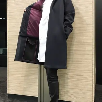 展示会では、薄いグレーに内側が赤のコートを試着していましたが、発注したのは濃いグレーのコート。