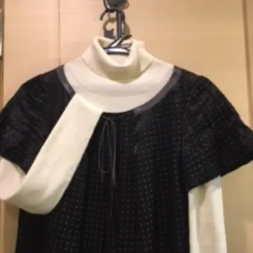 合わせたのは、白のタートルに細かいドットのワンピース。