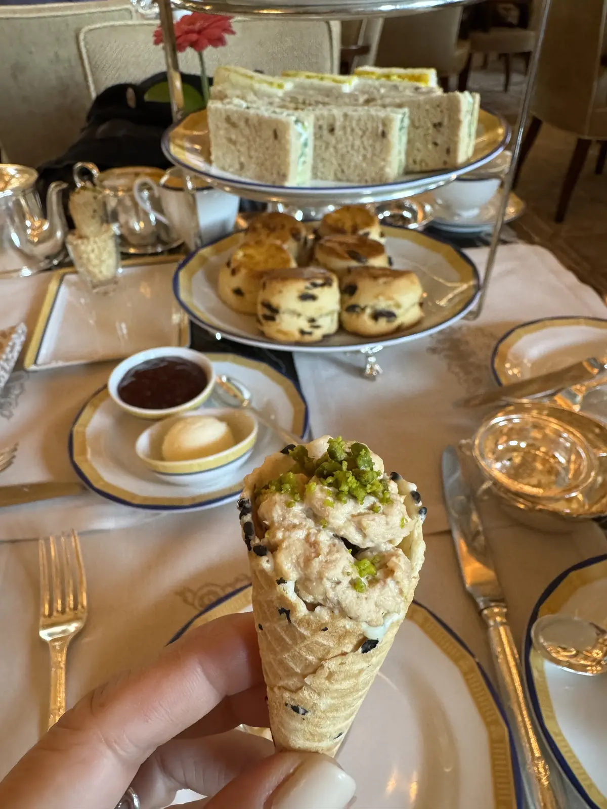 ペニンシュラホテルのアフタヌーンティーは宿泊ゲストのみ予約可能。私たちは別のホテルへ宿泊していたのでショッピングの後に立ち寄りました。混雑を覚悟しましたが運良くお席へ案内して頂いてラッキー💫
