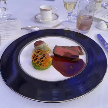 和牛ロース肉のポワレと牛肉のブレゼ・シューファルシー 赤ワインソース添え