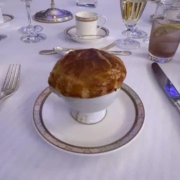 七面鳥と栗 トリュフ風味のコンソメスープパイ包み焼き “玉手箱仕立て”