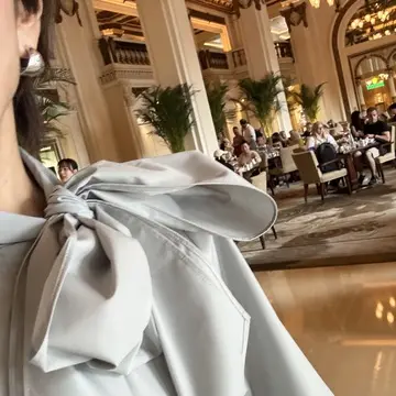 この日はアフタヌーンティーを予約していたので、クラシカルな空間の雰囲気に合うボウタイブラウスをセレクトしました