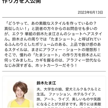 いつもの“たまショート”も、しっとりと艶やかにまとめていただき、鏡に映る自分がいつもと違って見えてとても新鮮でした