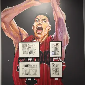 今回のイベントの見どころをお尋ねしたら「スラムダンクの名場面」と聞いて行ってみると…迫力の絵がズラリ!