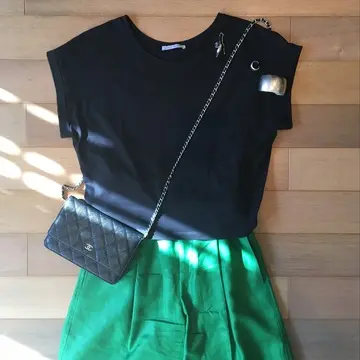 緑 × 黒 は、グッと落ち着いた雰囲気になるので、同じパンツでも雰囲気が全く違うものに!