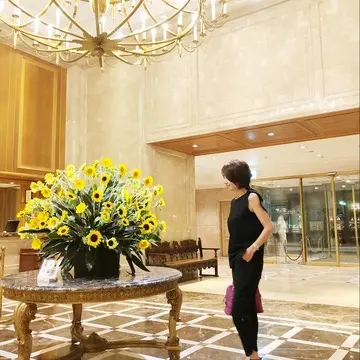天井高のロビーには生け込みされた大輪のひまわりがお出迎えをしてくれました。