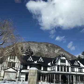 絵本の中に出てきそうな洋館は、ランチで訪れた軽井沢ホテル「ロギングハウス」