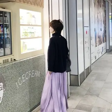この日の装いは、以前からご紹介させてもらっているCINOHのスカートにショート丈のホワイトニットを合わせて