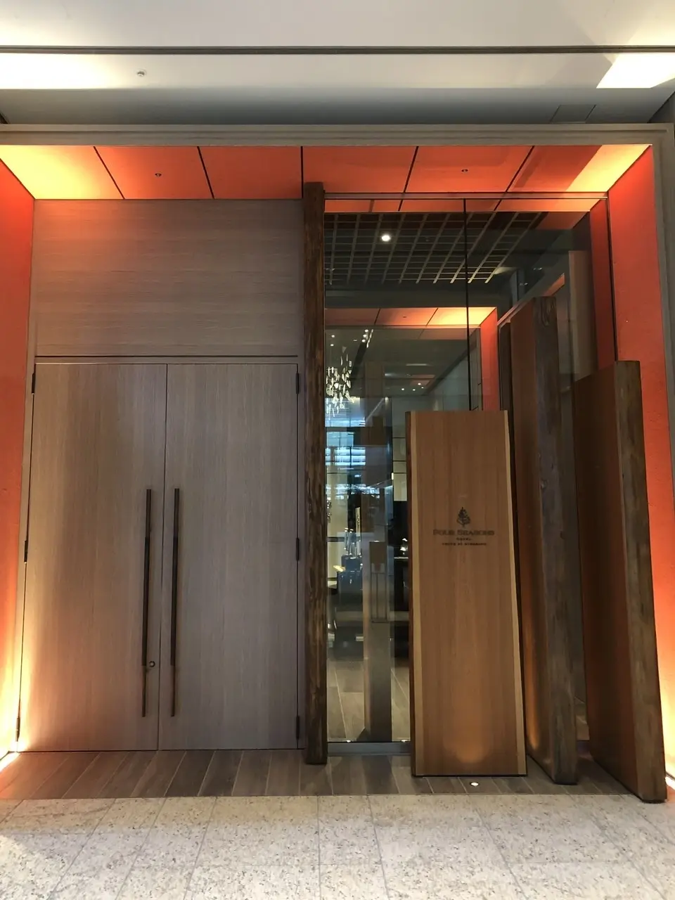 ホテルの入り口は一階にあり、ここからエレベーターに乗ってロビーフロアまで上がります