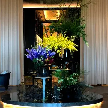 ロビーフロアの水辺の花たちやフロント、テーブルの装飾はなみ先生がアレンジされたものなんです…感動〜!!!