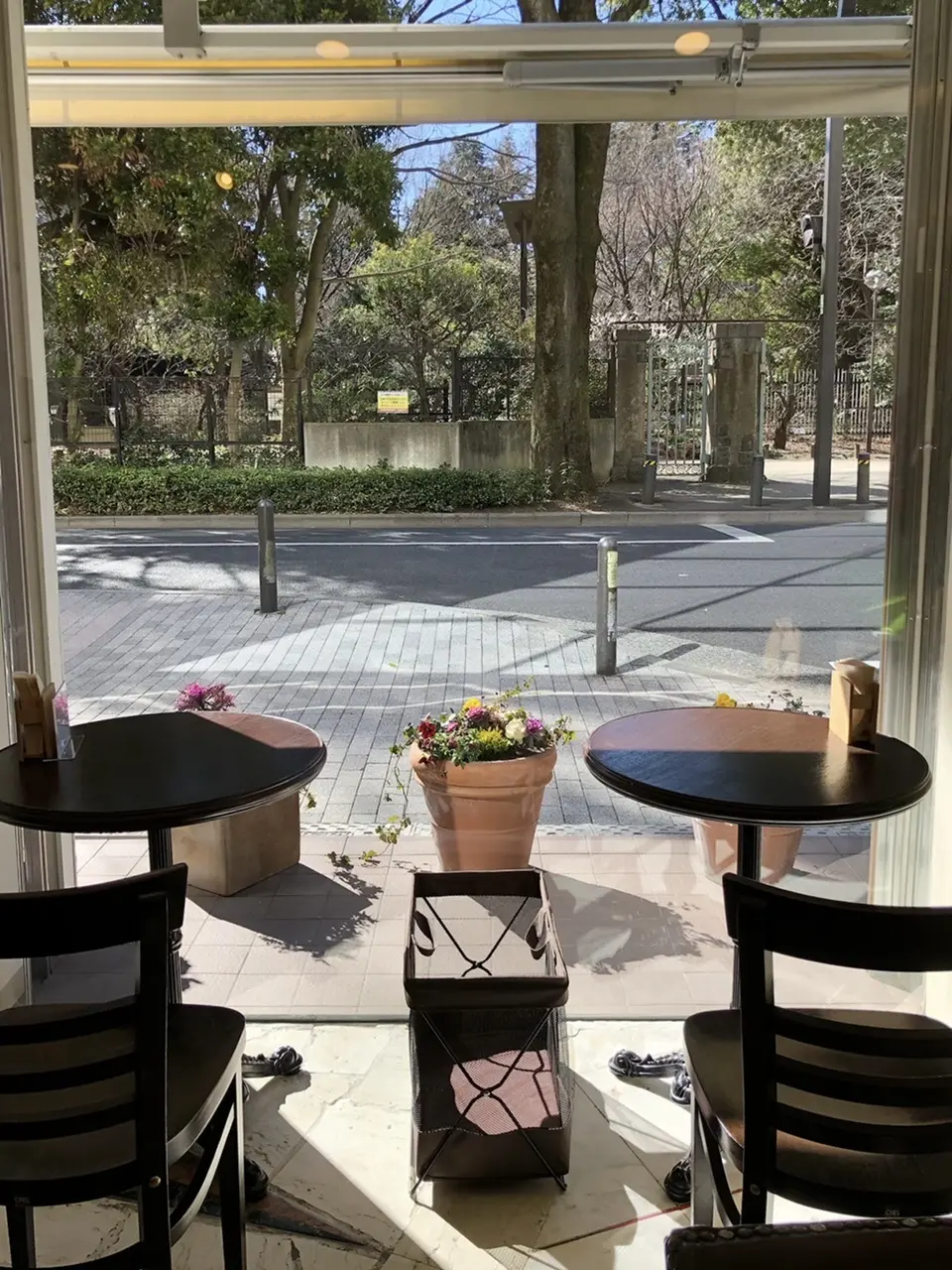 カフェの目の前は新宿御苑なので窓から緑が見える自然豊かな場所にあります
