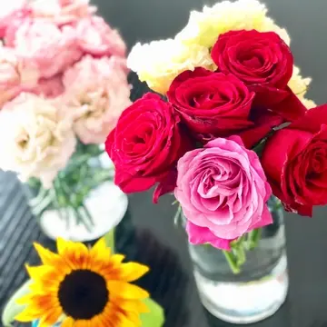 沢山のお花を生けられるように、大きめの花器をチョイス。