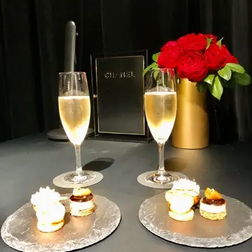 世界の巨匠、アランデュカスが世界一のセンスと認めた波多江篤氏のフィンガーフードとシャンパンを頂きながら、シャネルの世界を堪能。