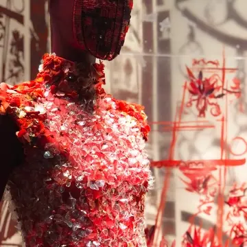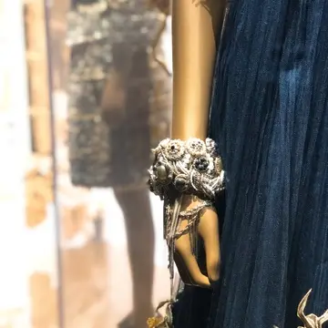 5つのカラーに色分けされたブースには、繊細な刺繍を施した職人技が光るドレスやハイジュエリーが展示されています。