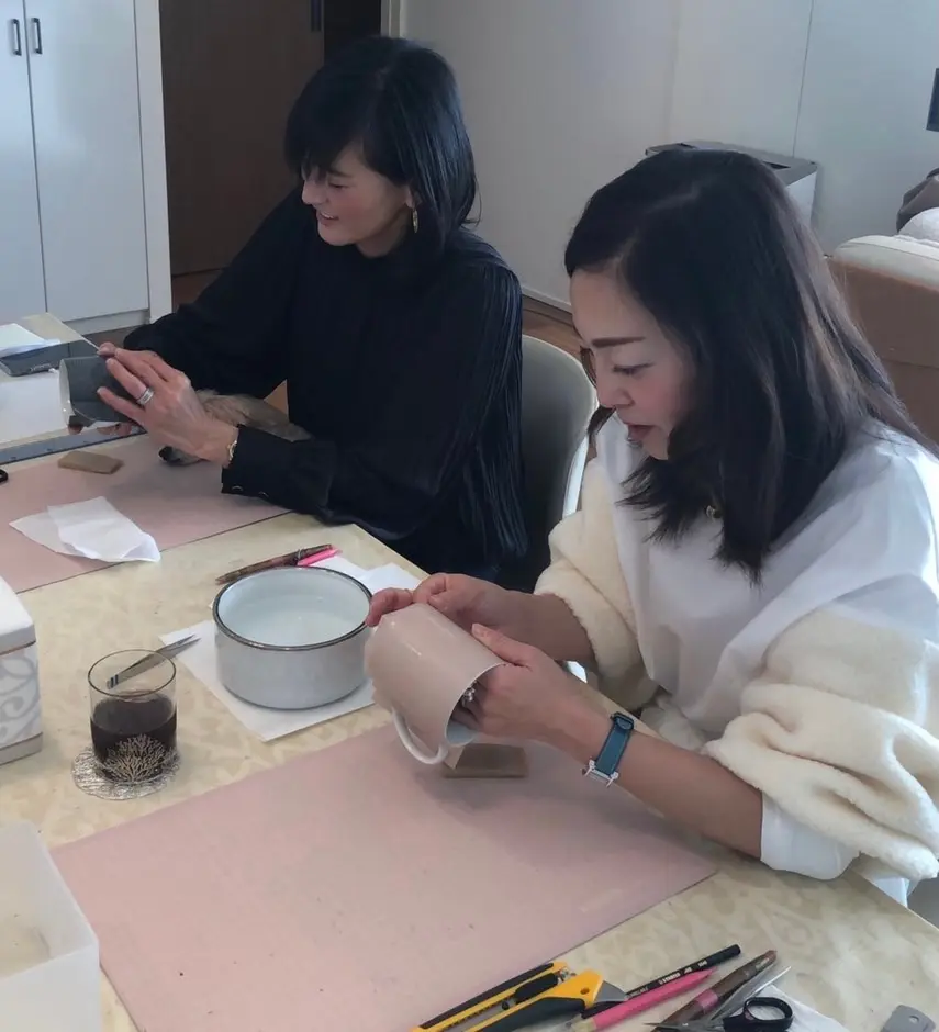 ランチ前には、そんなたま江ちゃんのサロンでポーセラーツの体験レッスン。