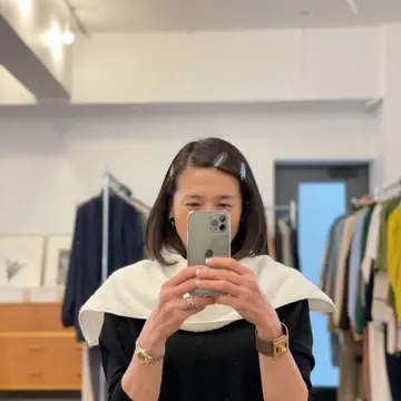 撮影から時間が経ち、少し髪ものびてきました。この日はヘアアイロンで内巻きに。たまに外巻きにして雰囲気を変えたり楽しんでいます。