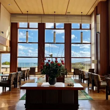 観光後は、部屋から海が一望できる「別邸海と森」へ。