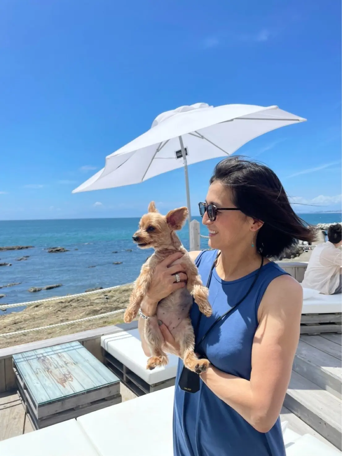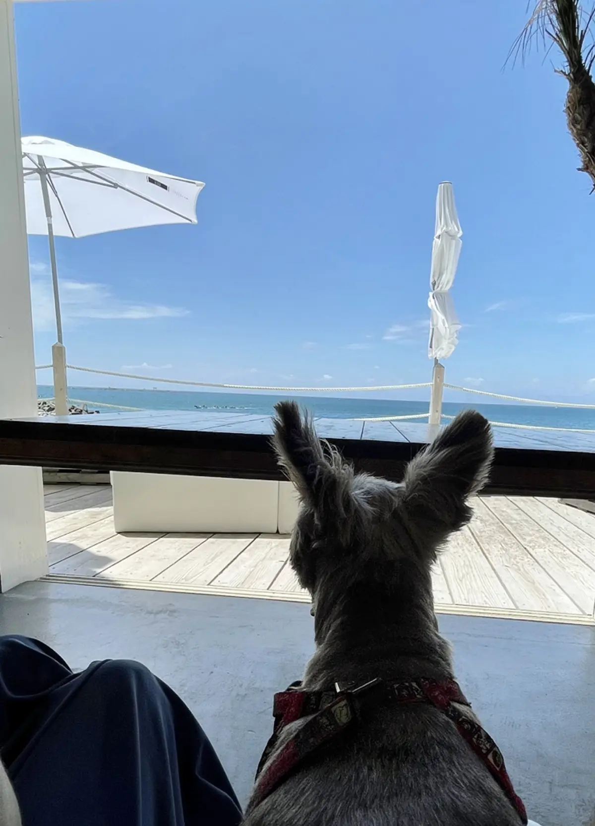 わんこの為にテラスは諦め、海が目の前に見える席に。それでも海を見ながらのランチは格別でした。