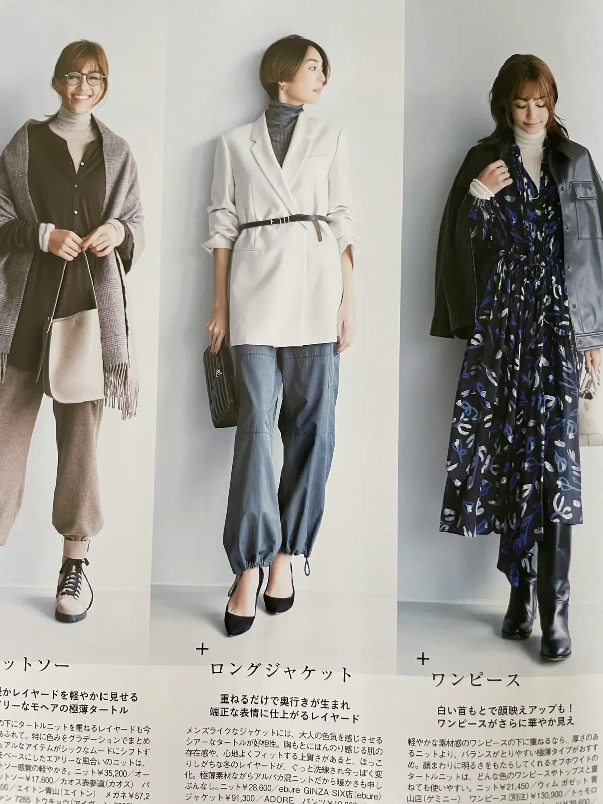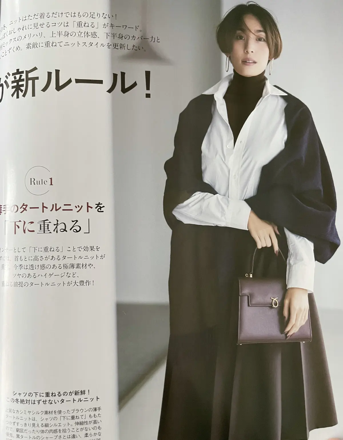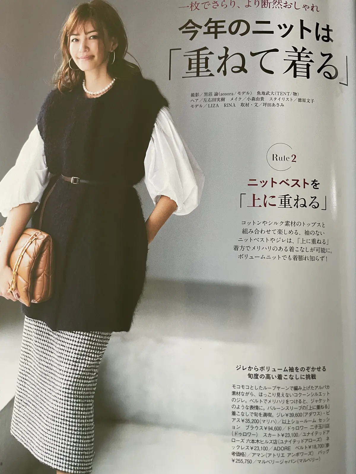 エクラ12月号の「今年のニットは重ねて着るが新ルール」。