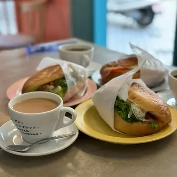 ピンクの大型タータンチェックで伺ったお店は、パンとエスプレッソの姉妹店、旬喫茶 バンエス🥠