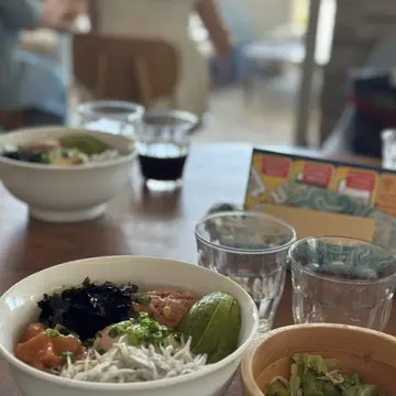 ランチは、コンサートがあった茅ヶ崎迎賓館下にあるサザンビーチカフェで、湘南名物シラスが入ったポキ丼。