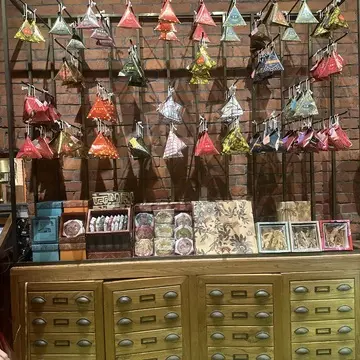 レンガ作りの趣きある外観から一歩足を踏み入れたら、アリスやハリーポッターの絵本の中に入った様な空間が広がり、1階にはパッケージも可愛いスイーツやお土産が並びます🧡