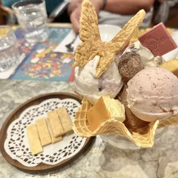 2階のレストランには、見栄えも美味しい中華料理や、丸い入れ物からお菓子が選べる、デコアイスクリームが可愛すぎ🍨