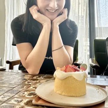 私は、好きな杏仁ミルクを、デザートは、可愛い苺と生クリームのシフォンケーキを皆で美味しく頂きました🎂