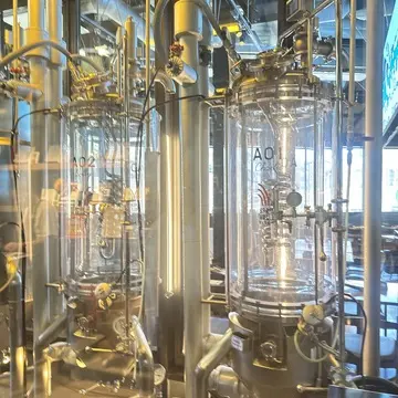 店内に一歩入ると、目の前に広がるのはガラス越しに見える醸造タンクの風景。醸造中の香ばしいホップの香りがふんわり漂ってきて、ビール好きにはたまりません!