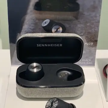 グレーのお洒落なパッケージに入っているmomentum true wirelessは、Bluetoothながら良い音で聞こえて、人気🎶