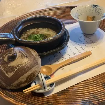 鮎雑炊は、骨煎餅付きでした。
