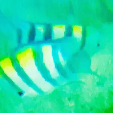 餌付けされた熱帯魚の写真を撮っていました。黄色い魚が鮮やかなクリア画像で、とっても綺麗に撮れてました。