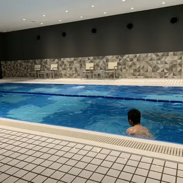 練習後は、名古屋ヒルトンホテルのプールでリラックス。