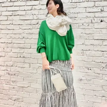 私が選んだ変則的なチェックのマーメイドスカートに、クリスマス🎄なグリーンのニットを、美帆ちゃんがスタイリングしてくれました❗️