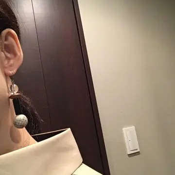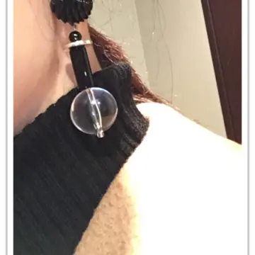右の黒いイヤリングもお気に入り。一気にモードな雰囲気に。